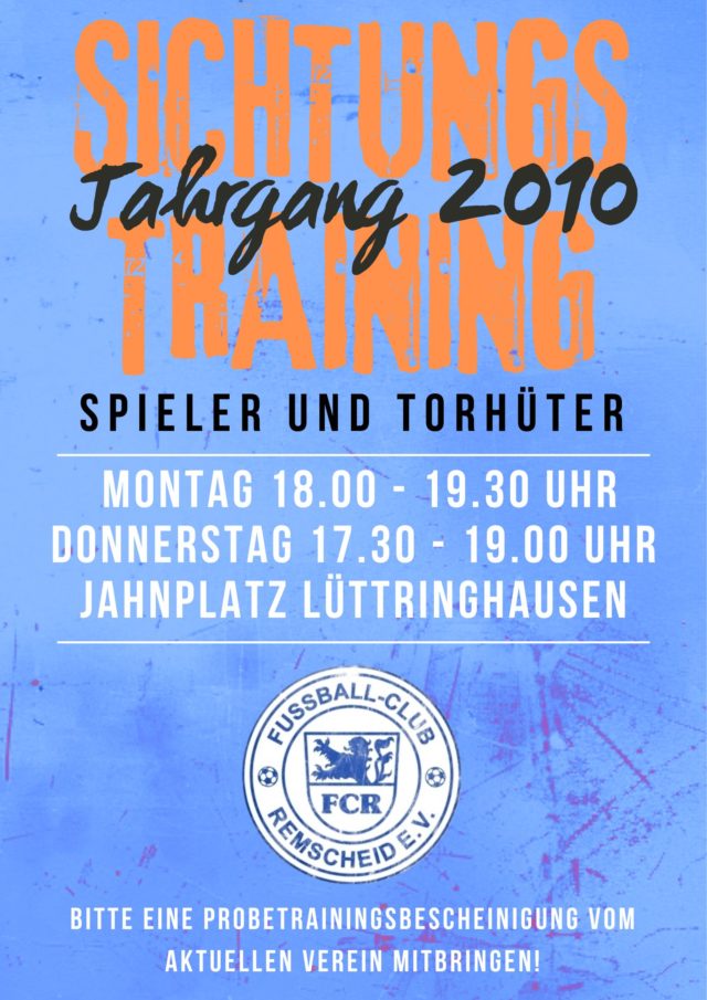 Nach einer hervorragenden Saison unser neu aufgebauten C1-Jugend in der Kreisleistungsklasse, sucht die Mannschaft jetzt Verstärkung für die neue Saison als B2-Jugend. Dafür starten ab morgen die Sichtungstrainings für den Jahrgang 2010.